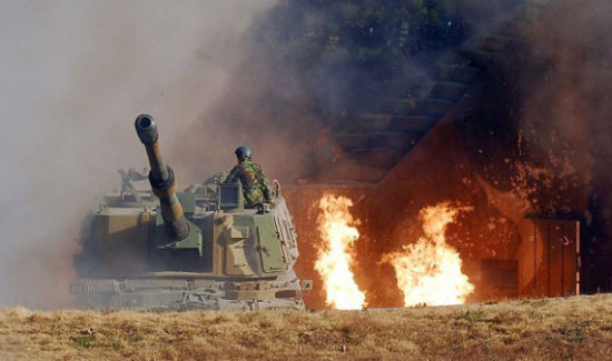 資料圖:2010年11月25日,韓國對外公布被朝鮮炮兵擊中的K-9炮兵陣地照片。