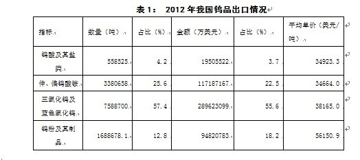 2、2012年鎢出口市場情況