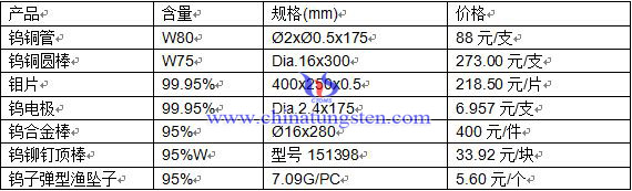 今日主要鎢制品市場平均價格: