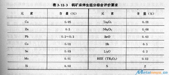表3.12.3鎢礦床伴生組分綜合評(píng)價(jià)要求