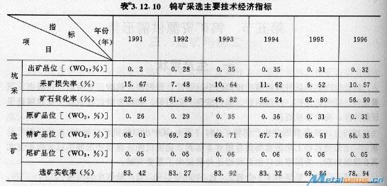 表3.12.10鎢礦采選主要技術(shù)經(jīng)濟(jì)指標(biāo)項(xiàng)目指標(biāo)