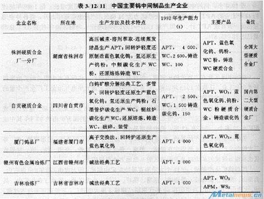 表3.12.11中國主要鎢中間制品生產(chǎn)企業(yè)