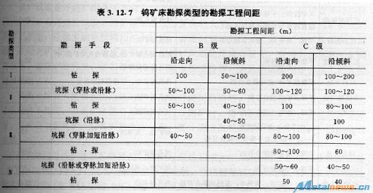 表3.12.7鎢礦床勘探類型的勘探工程間距