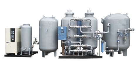 碳分子篩是變壓吸附制氮設(shè)備的核心部分,油中毒是碳分子篩的主要失效形式之一,對水的吸附會降低碳分子篩對氧的吸附能力,有油潤滑空壓機(jī)排出的壓縮空氣通常含有油和水,所以必須在壓縮空氣進(jìn)入氧氮分離組件之前除油除水?諝鈨艋M件由管道過濾器、冷凍干燥機(jī)、精過濾器、超精過濾器、活性碳除油器、自動排污閥、球閥等組成,其作用是除去壓縮空氣中的塵埃、水和油,為氧氮分離組件提供潔凈的原料空氣。