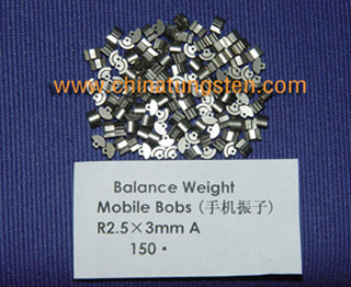 Application for tungsten heavy alloy in vibrator People find tungsten heavy alloy is excellent material for making this component. Since the density of tungsten alloy is so high and the maximum density should be 18.6g/cm3. It is popular for the component needs great heaviness but small capacity, for example: mobile phone vibration, the vibrating parts of and clock, etc. Mobile phone bobs and clock vibration parts are one of our leading products. Compared with other materials, tungsten alloy vibrators bear the advantages of accurate weight, and non-magnetism. In particular, since a motorized weight usually produces the vibrations, lighter-weight phones may have weaker vibrating mechanisms. Various types of vibrators or bobs made from WHA are available. Please contact our sales team at sales@chinatungsten.com for more details.