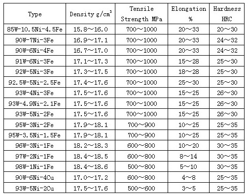 タングステン重い合金のプロパティ: