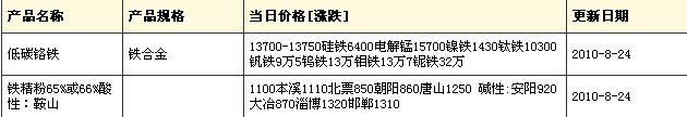 8月24日 鐵合金鐵精粉現(xiàn)貨報(bào)價(jià)
