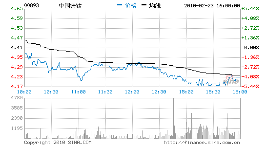 受業(yè)績(jī)遜于預(yù)期影響,中國(guó)鐵鈦?zhàn)蛉展蓛r(jià)下滑4.08%至4.23港元。