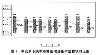 湘西沉積型鋁鎳礦床處于揚子準地臺的南緣,與雪峰山地軸毗鄰,區(qū)域構(gòu)造位置上屬古丈復背斜北東端次一級構(gòu)造。區(qū)域內(nèi)鎳、鉬礦床賦存于寒武系下統(tǒng)與中上統(tǒng)的接觸部位,該層位巖性在平面上呈相變接觸關(guān)系,相變線沿六角莊、天門山、溪口一線大致呈北東方向展布。經(jīng)已勘查的鎳鉬等礦區(qū)及區(qū)域化探等資料反映,鎳、鉬礦床(點)及異常均位于該相變帶內(nèi)或沿相變帶分布。礦區(qū)及已勘探的大滸礦區(qū)(中型)白竹峪礦段同屬北東向沉積相變帶的南東側(cè),具有相同的沉積環(huán)境、牛蹄塘組黑色頁巖含礦巖系和成礦地質(zhì)條件,礦石類型、礦石組合及有用元素賦存狀態(tài)可以類比。具備形成鋁礦床的各種地質(zhì)及地球化學條件。因此,進一步開展研究工作和找礦分析具有一定找礦指導意義。