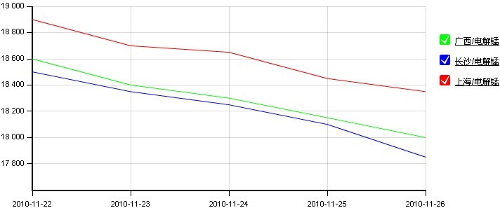 圖1:全國主要地區(qū)電解錳價格走勢圖(2010.11.22-2010.11.26)
