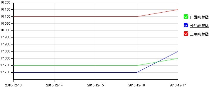 圖1:全國主要地區(qū)電解錳價格走勢圖(2010.12.13-2010.12.17)