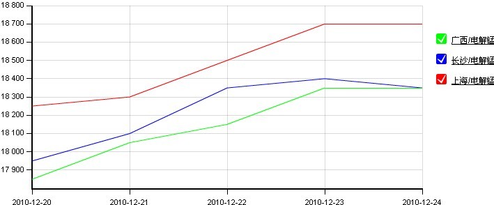 圖1:全國主要地區(qū)電解錳價格走勢圖(2010.12.20-2010.12.24)