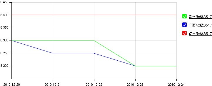圖2:全國主要地區(qū)錳合金走勢圖(2010.12.20-2010.12.24)